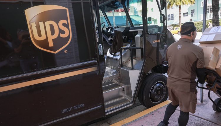 A UPS driver makes a delivery on January 30, 2024 in Miami Beach, Florida.