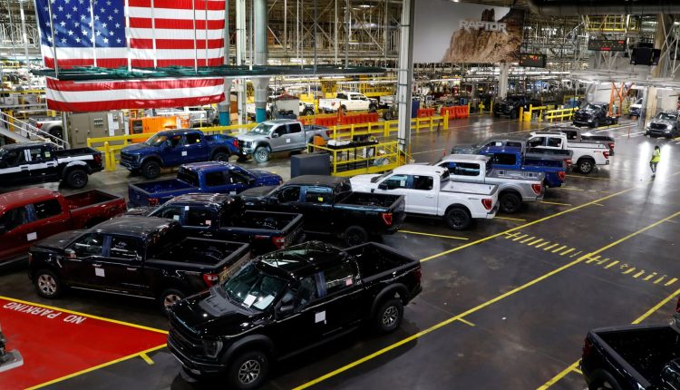 Ford Motor Co. fuel powered F-150 trucks under production at their Truck Plant in Dearborn, Michigan on September 20, 2022.