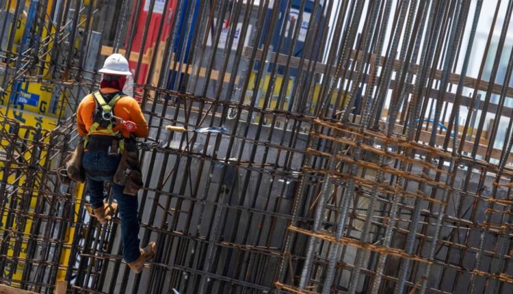 Construction workers erect a building in downtown Miami, Florida, on June 14, 2023.