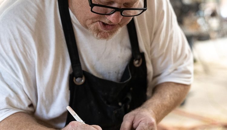 Now, Kristen has taken over a lot. She keeps me in line on what needs to be done. I’ll go out [to the workshop] and there’ll be a sticky note that says, “Dad, you need to pour seven beige stones today.”