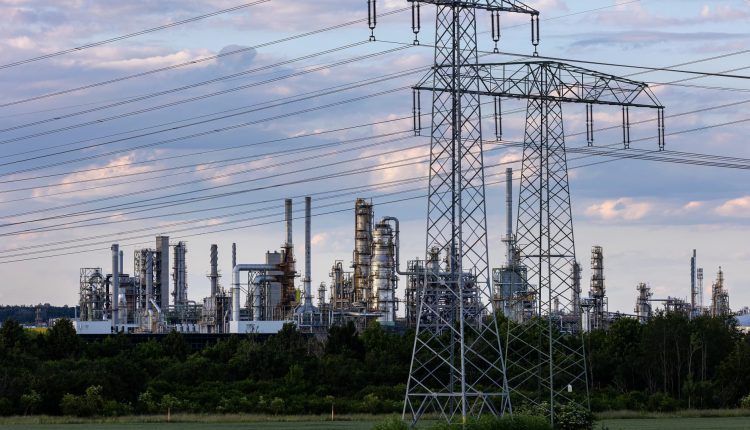 The Leuna refinery and chemical industrial complex, home to facilities operated by companies including TotalEnergies SE, Shell Plc, BASF SE, and Linde AG, beyond electricity towers in Leuna, Germany, on Tuesday, June 7, 2022.