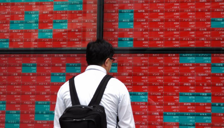 A man looks at an electronic boarddisplaying stock prices of the Nikkei 225 listed on the Tokyo Stock Exchange in Tokyo on April 30, 2024.