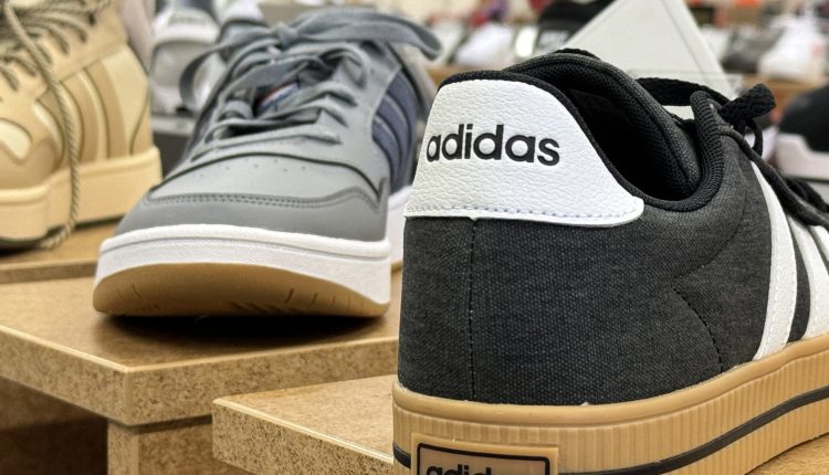 Adidas shoes are displayed at a DSW store on January 31, 2024 in Novato, California.