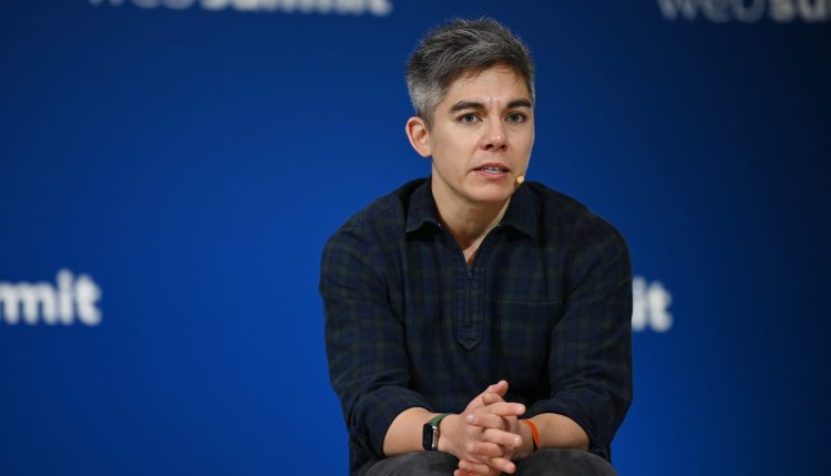 Hiroki Takeuchi, GoCardless chief executive, on the MoneyConf Stage, attends Web Summit 2021 in Lisbon, Portugal.