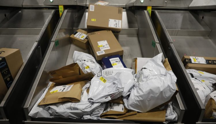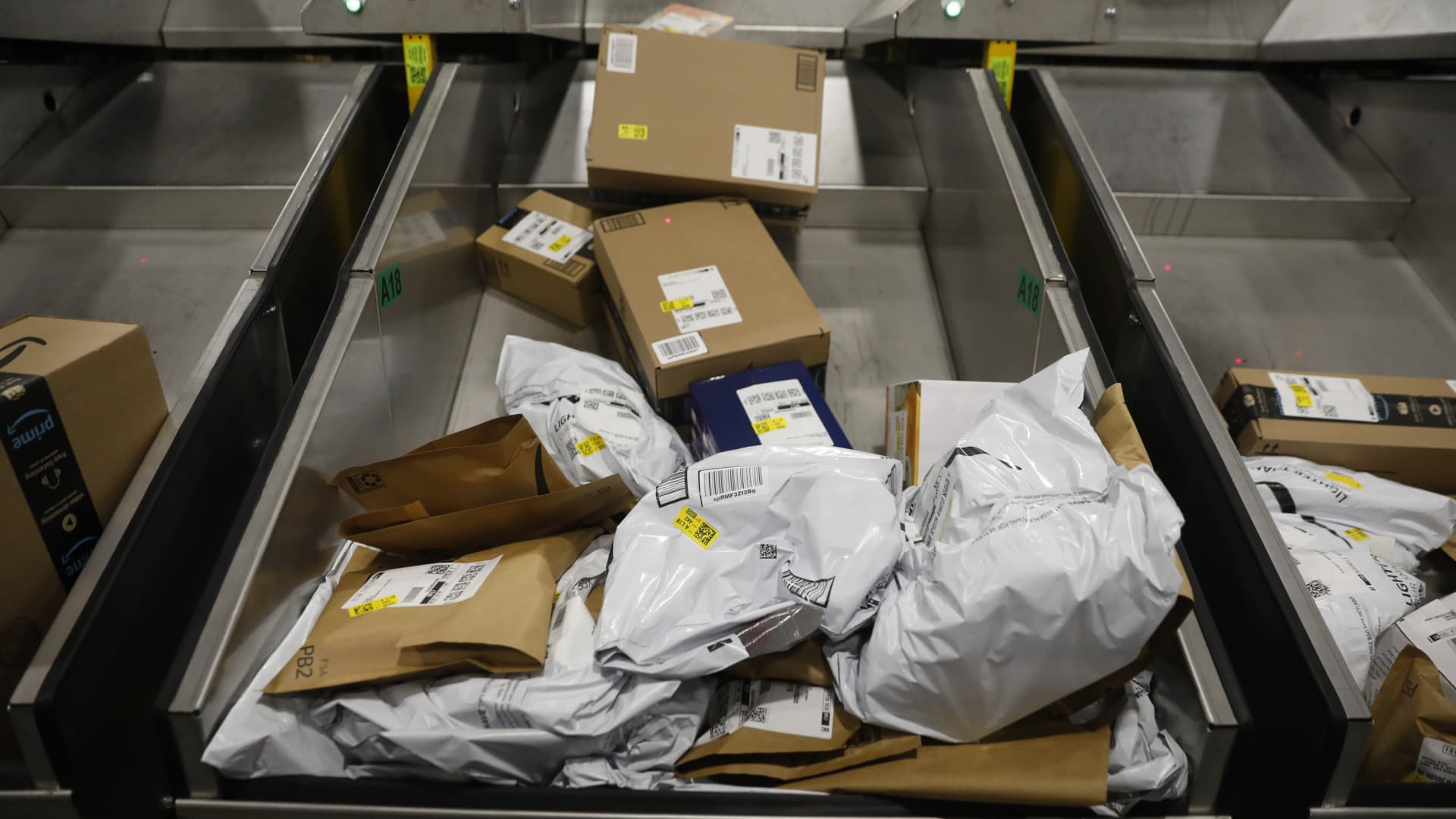Products are seen at an Amazon fulfillment center where they are being sorted and shipped out as same-day orders during Cyber Monday at the Same-Day Delivery Facility Fulfillment Center in Tampa, Florida, on Nov. 27, 2023.
