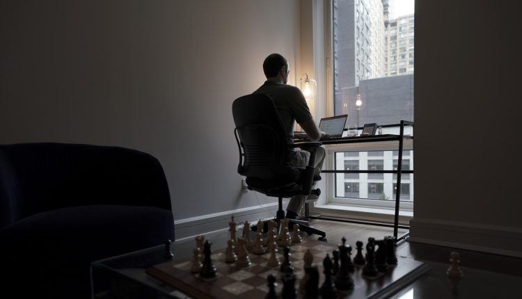 NEW YORK – Jan. 6, 2023: Nate Anderson works at his desk. Anderson exposes corporate fraud and ponzi schemes through his company Hindenburg Research.