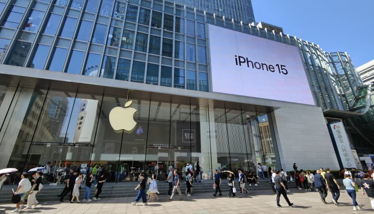 Customers are shopping for the iPhone 15 at the flagship store of Apple Smart Products on Nanjing Road Pedestrian Street in Shanghai, China, on May 24, 2024.