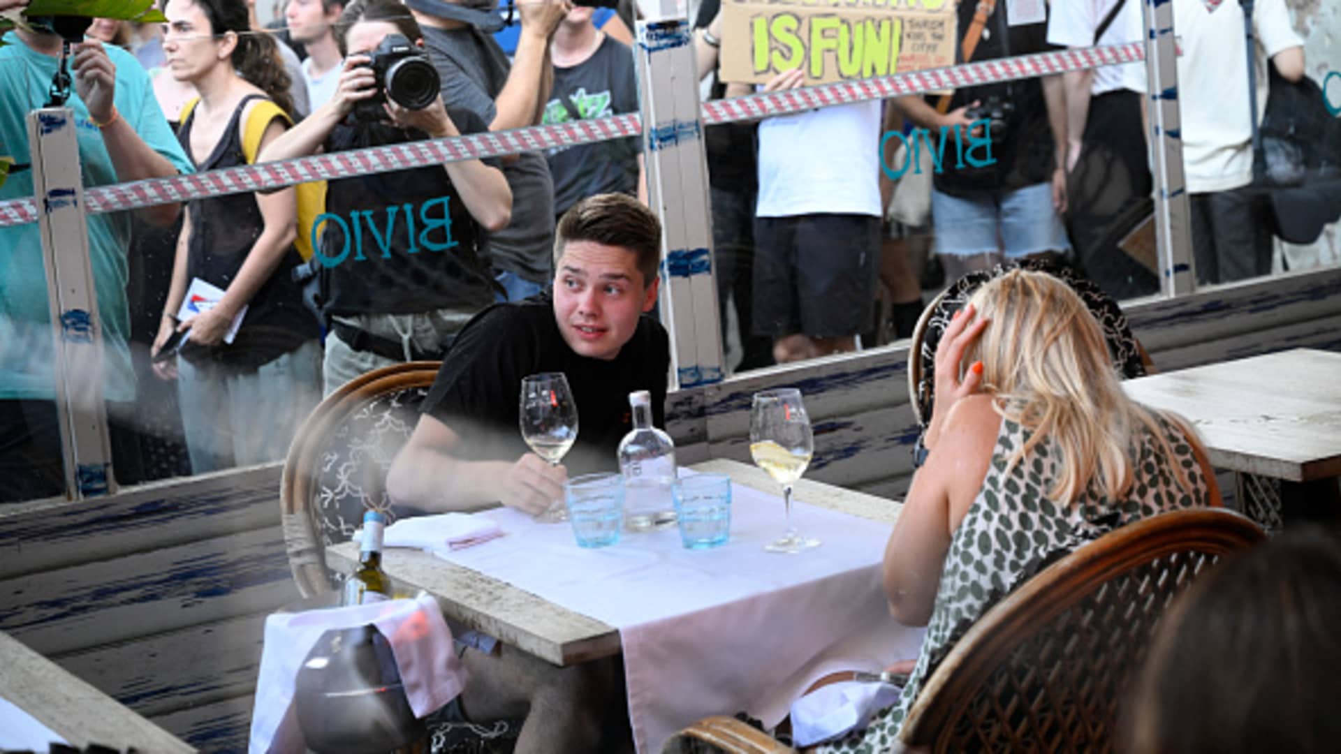 Videos and photographs show people attempting to avoid the crowds — some walking away from their tables mid-meal — while others, including restaurant staff, verbally sparred with anti-tourism activists.