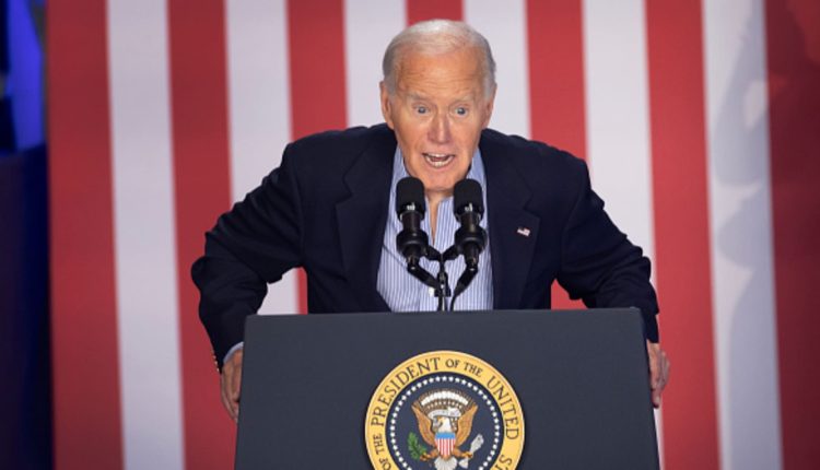President Joe Biden speaks to supporters during a campaign rally at Sherman Middle School on July 05, 2024 in Madison, Wisconsin.