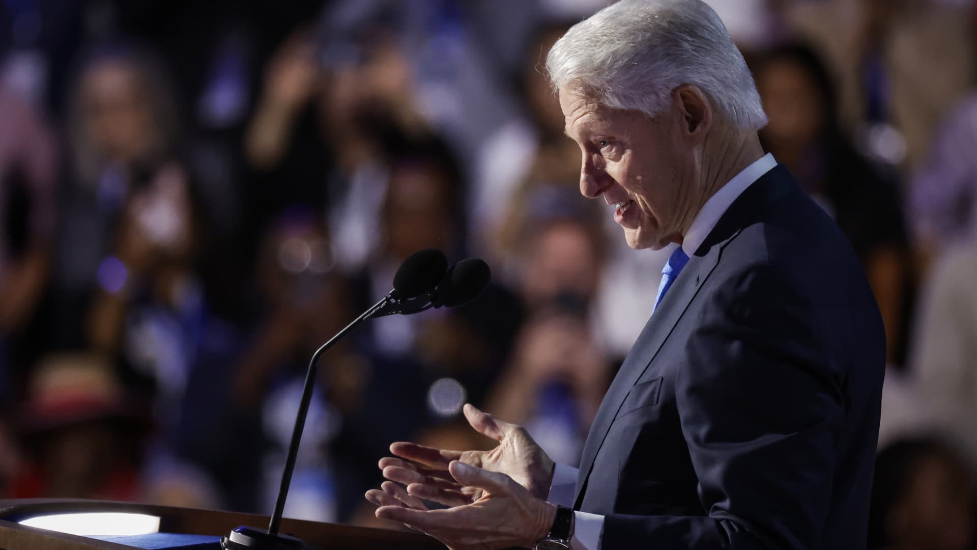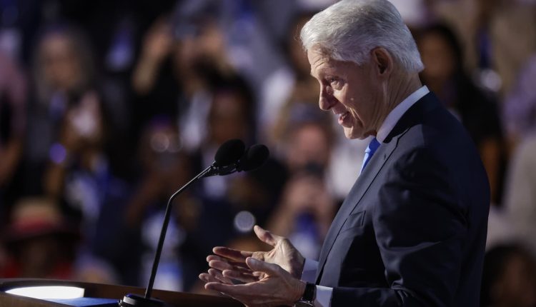 Former U.S. President Bill Clinton speaks on stage during the third day of the Democratic National Convention at the United Center on August 21, 2024 in Chicago, Illinois.