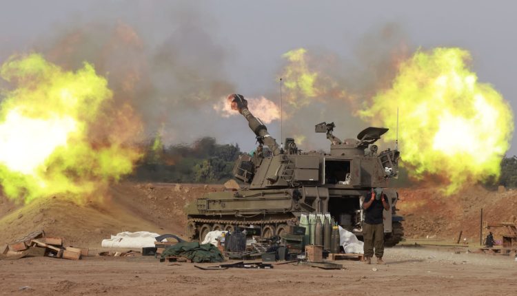 An Israeli army self-propelled artillery howitzer fires rounds from a position near the border with the Gaza Strip in southern Israel on Dec. 7, 2023.