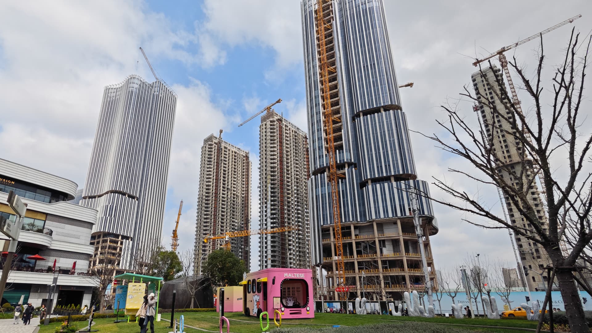 High-rise residential and commercial buildings are being constructed near Dongyu Road, Qiantan, in the Pudong New Area of Shanghai, China, on March 15, 2024.