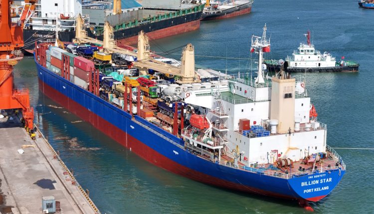 Cargo ships loaded with cars and containers for export are departing at the port of Yantai in Yantai, China, on July 31, 2024.