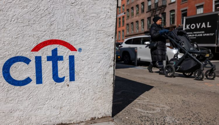 People walk by a CitiBank location in Manhattan on March 01, 2024 in New York City.