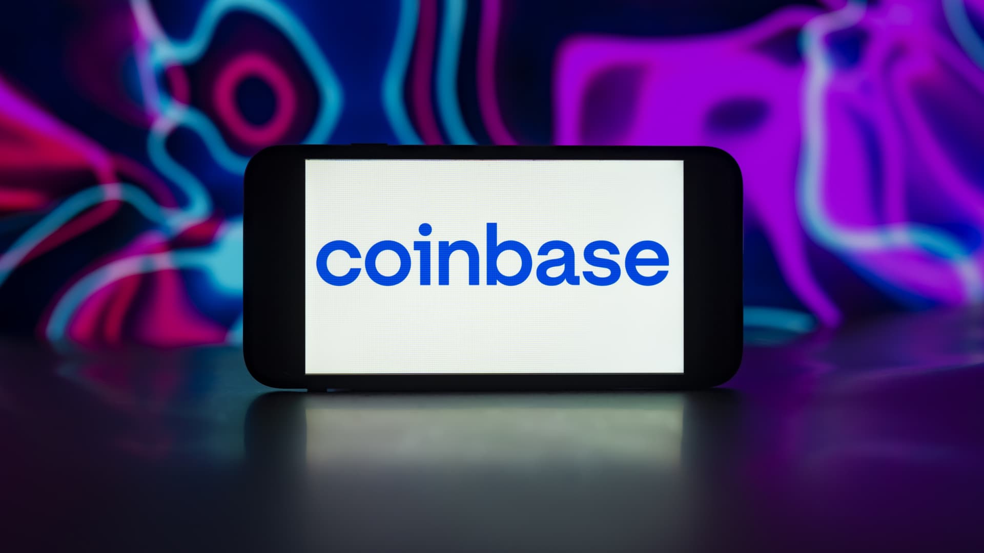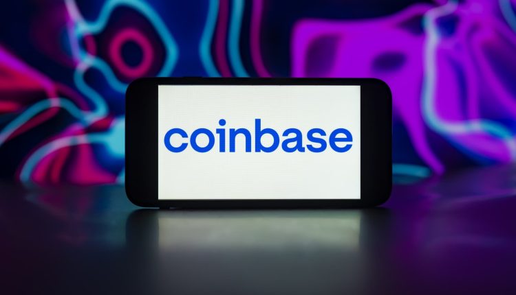 In this photo illustration, the Coinbase logo is seen displayed on a mobile phone screen.