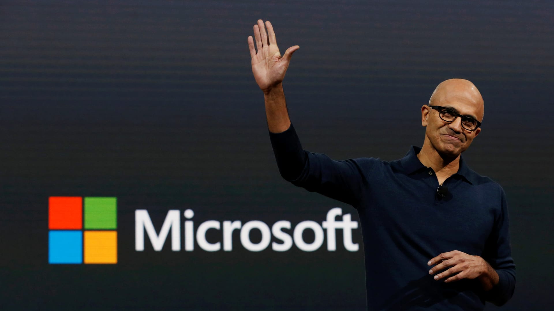 Microsoft Chief Executive Officer (CEO) Satya Narayana Nadella speaks at a live Microsoft event in the Manhattan borough of New York City, October 26, 2016.
