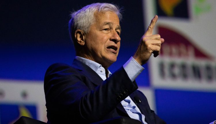 Jamie Dimon, chairman and chief executive officer of JPMorgan Chase & Co., speaks during an Economic Club of Detroit event in Detroit, Michigan, on Wednesday, Sept. 20, 2023.