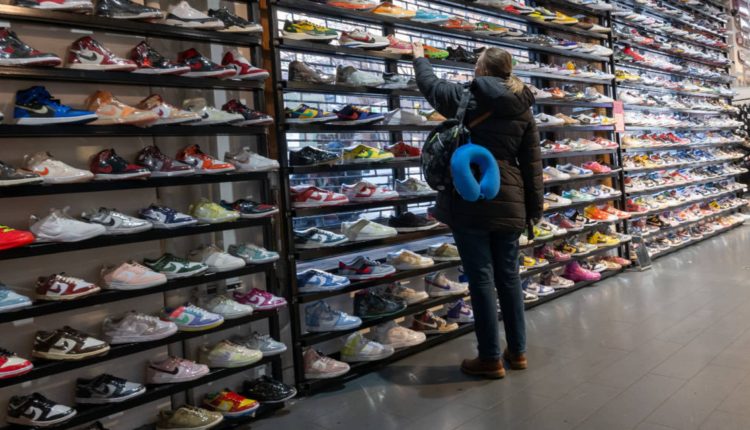 People shop at a retail shoe store in Manhattan on January 05, 2024 in New York City.