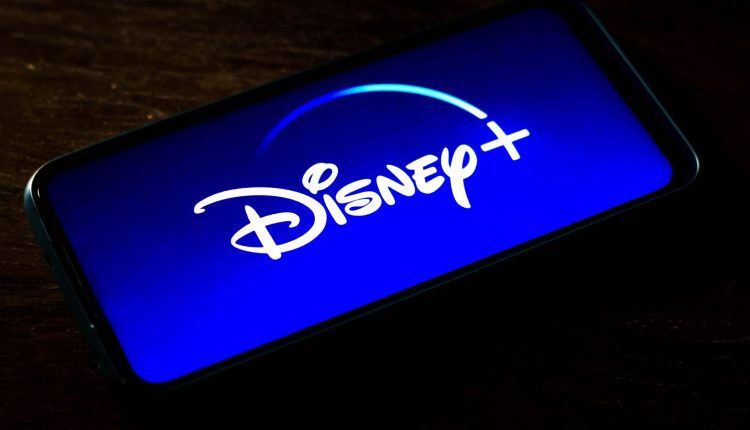 In this photo illustration the Disney+ logo seen displayed on a smartphone screen.