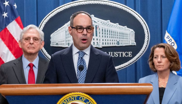 U.S. Assistant Attorney General Jonathan Kanter speaks about the antitrust lawsuit against Live Nation Entertainment during a press conference as Attorney General Merrick Garland and Deputy Attorney General Lisa O. Monaco look on during a press conference at the Department of Justice in Washington, U.S., May 23, 2024. REUTERS/Ken Cedeno