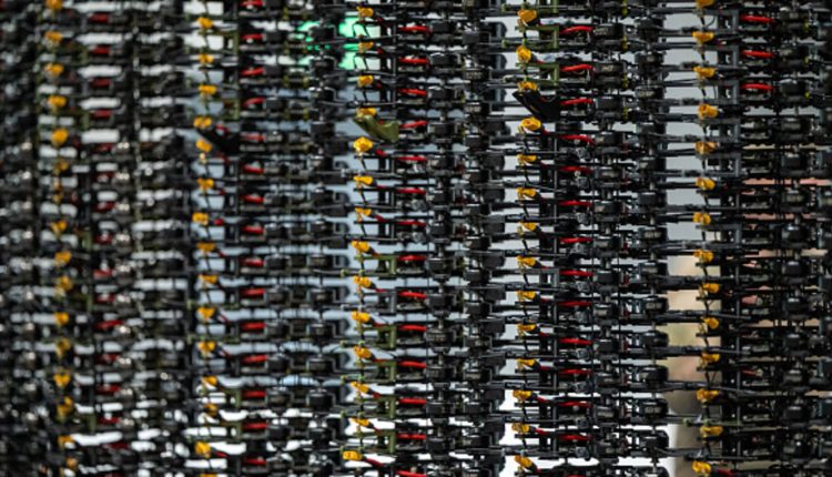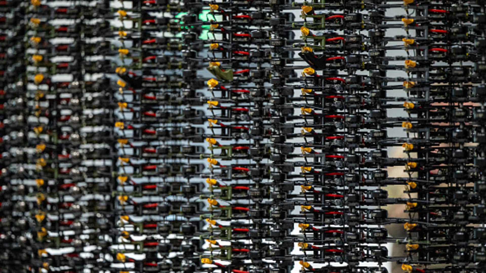 Pilots of the “Sharp Kartuza” division of FPV kamikaze drones prepare drones for a combat flight on May 16, 2024 in the Kharkiv region, 8 km from the border with Russia.
