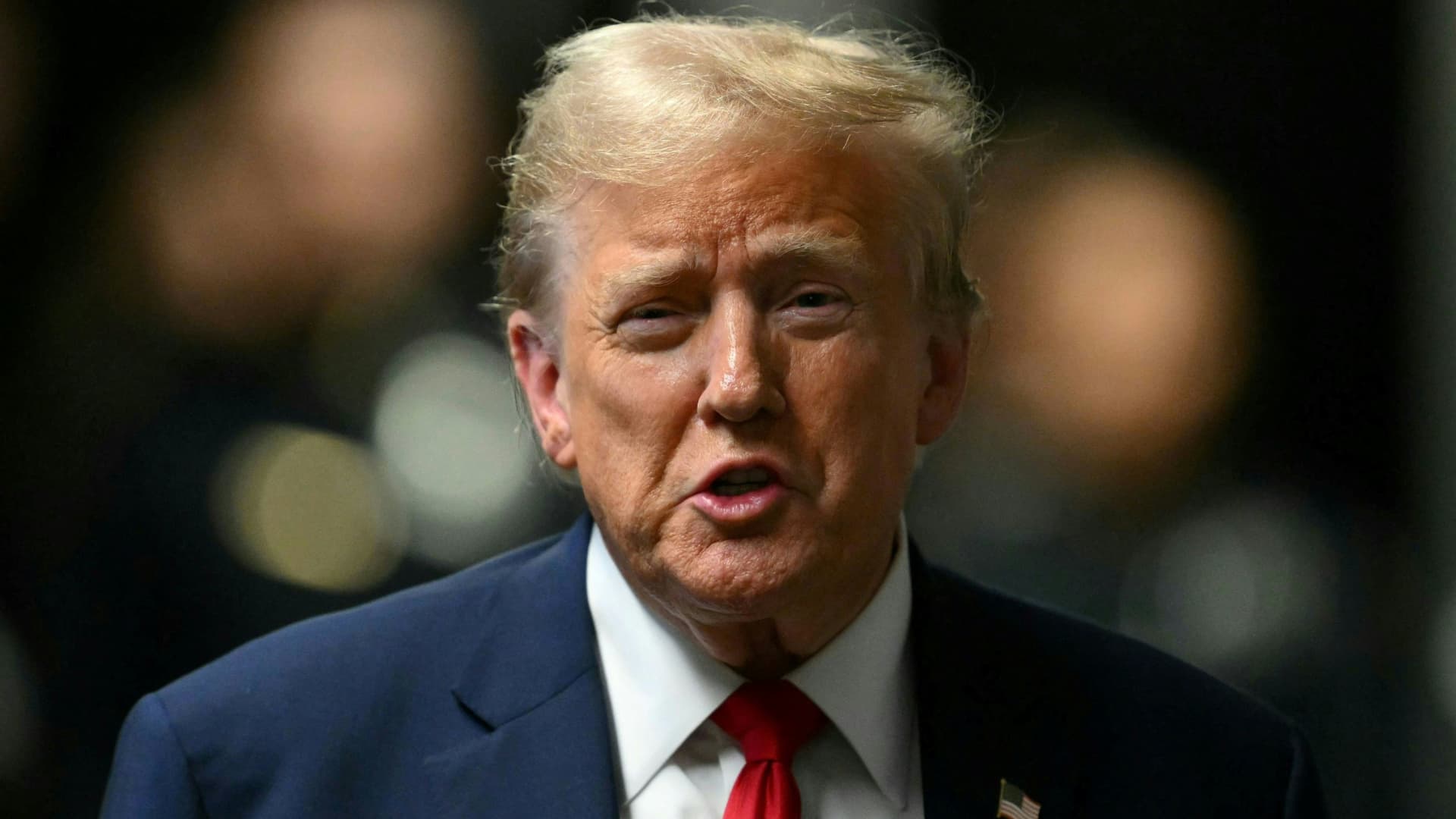 Former U.S. President Donald Trump speaks to members of the media amid his trial for allegedly covering up hush money payments linked to extramarital affairs, at Manhattan Criminal Court in New York City, U.S., on May 16, 2024.