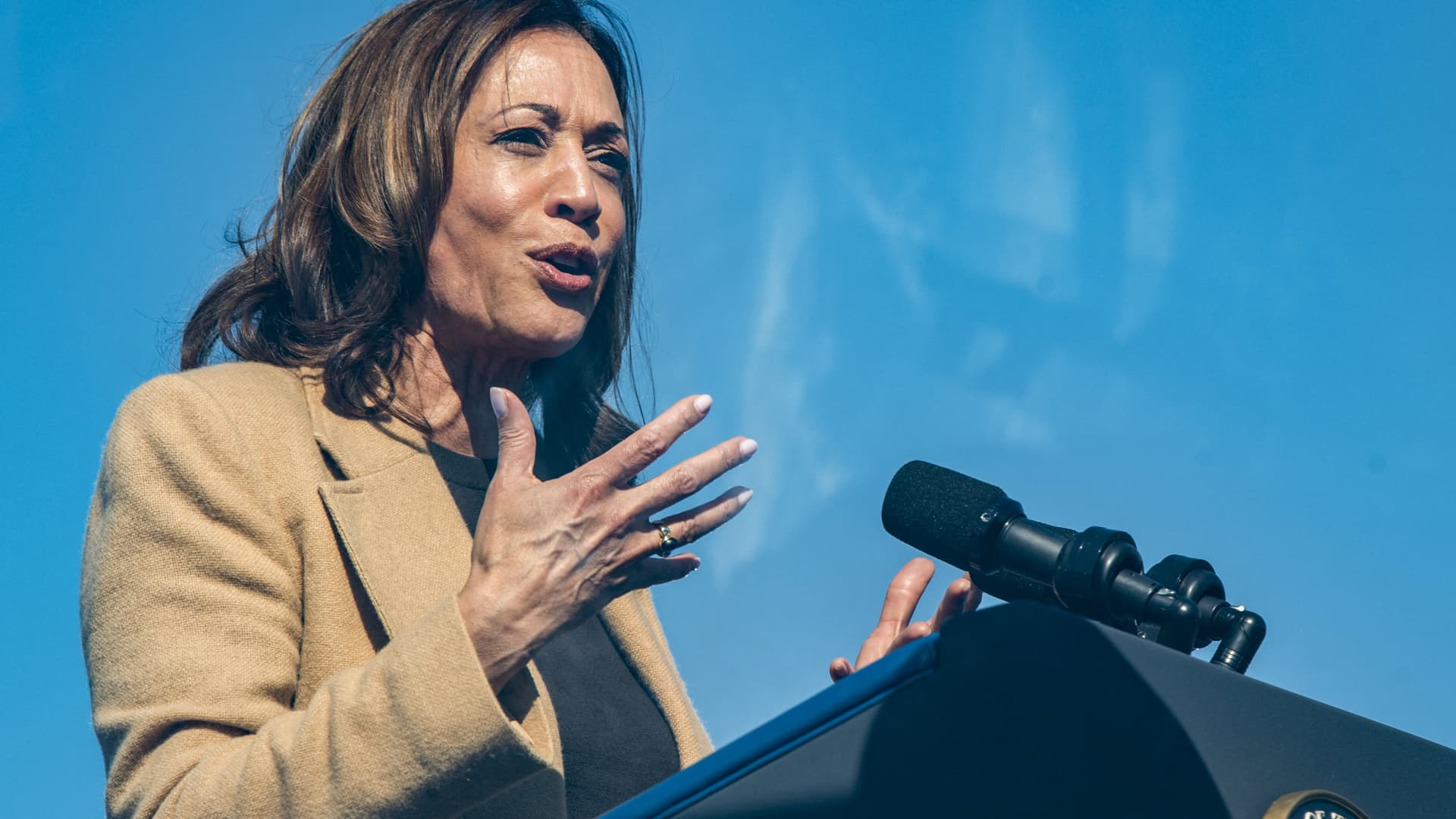 Harris said she dialed back Biden’s top rate, in part, because her goal is to encourage more private-sector investment.