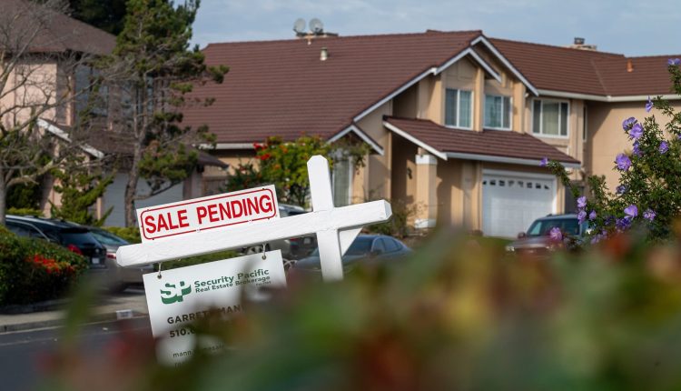 A “Sale Pending” sign in front of a home in Pinole, California, US, on Tuesday, Dec. 26, 2023.