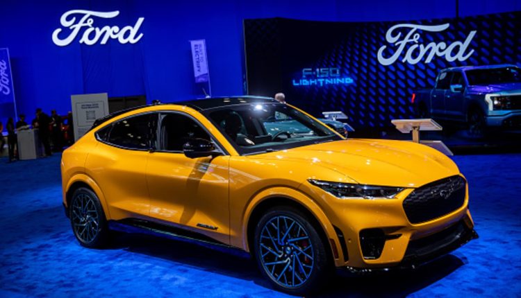 A Ford Mustang Mach-E GT compact sports utility vehicle during the 2022 New York International Auto Show in New York on April 14, 2022.