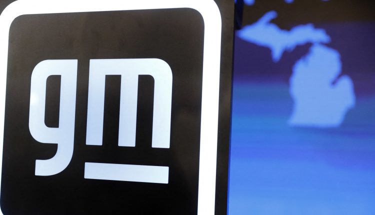 A General Motors sign is seen during an event on January 25, 2022 in Lansing, Michigan. – General Motors will create 4,000 new jobs and retaining 1,000, and significantly increasing battery cell and electric truck manufacturing capacity.