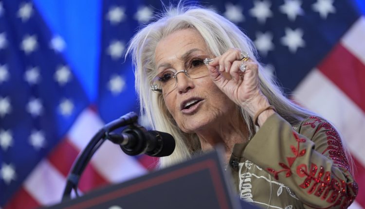 Miriam Adelson speaks during an event with Republican presidential nominee former President Donald Trump at Trump National Golf Club, Thursday, Aug. 15, 2024, in Bedminster, N.J.