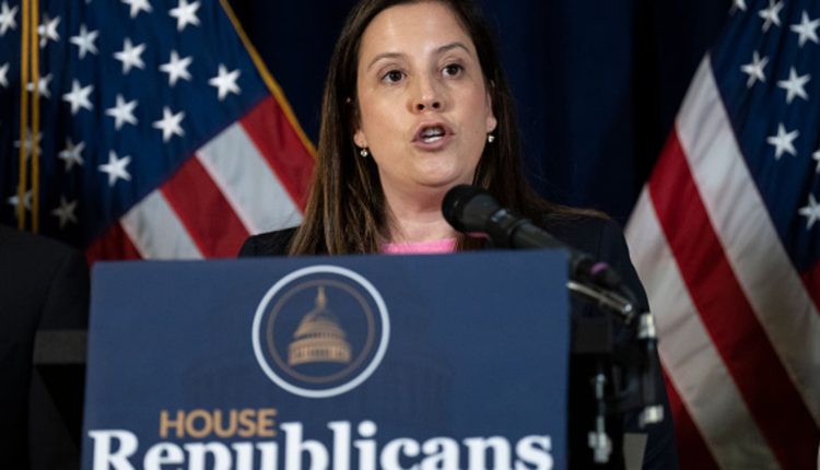 Chair of the House Republican Conference Rep. Elise Stefanik (R-NY) speaks during a news conference after a caucus meeting with House Republicans on Capitol Hill May 10, 2023 in Washington, DC.