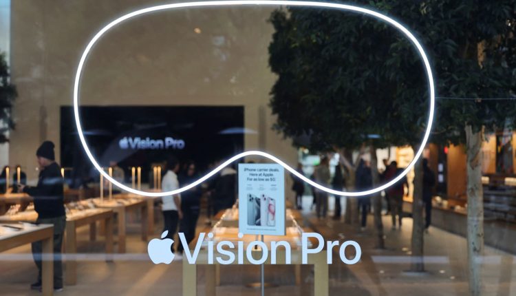 People walk in an Apple store on the day the Vision Pro headset goes on sale in Los Angeles, Feb. 2, 2024.