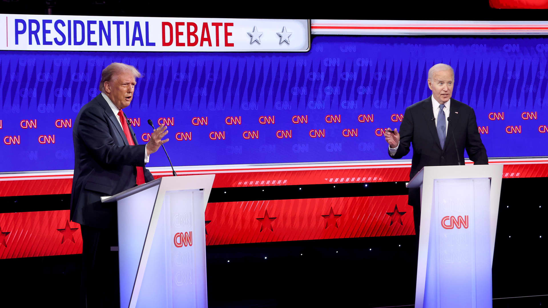 President Joe Biden and former President Donald Trump participate in the CNN Presidential Debate on June 27, 2024 in Atlanta.