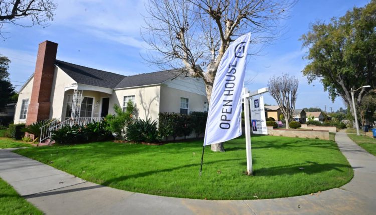 An “Open House” flag is seen in front of a home for sale in Alhambra, California on January 18, 2024.