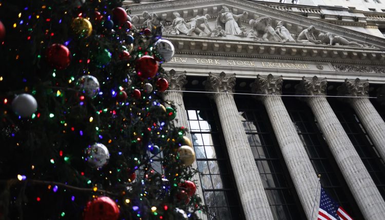 The New York Stock Exchange is seen during morning trading on December 01, 2023 in New York City.