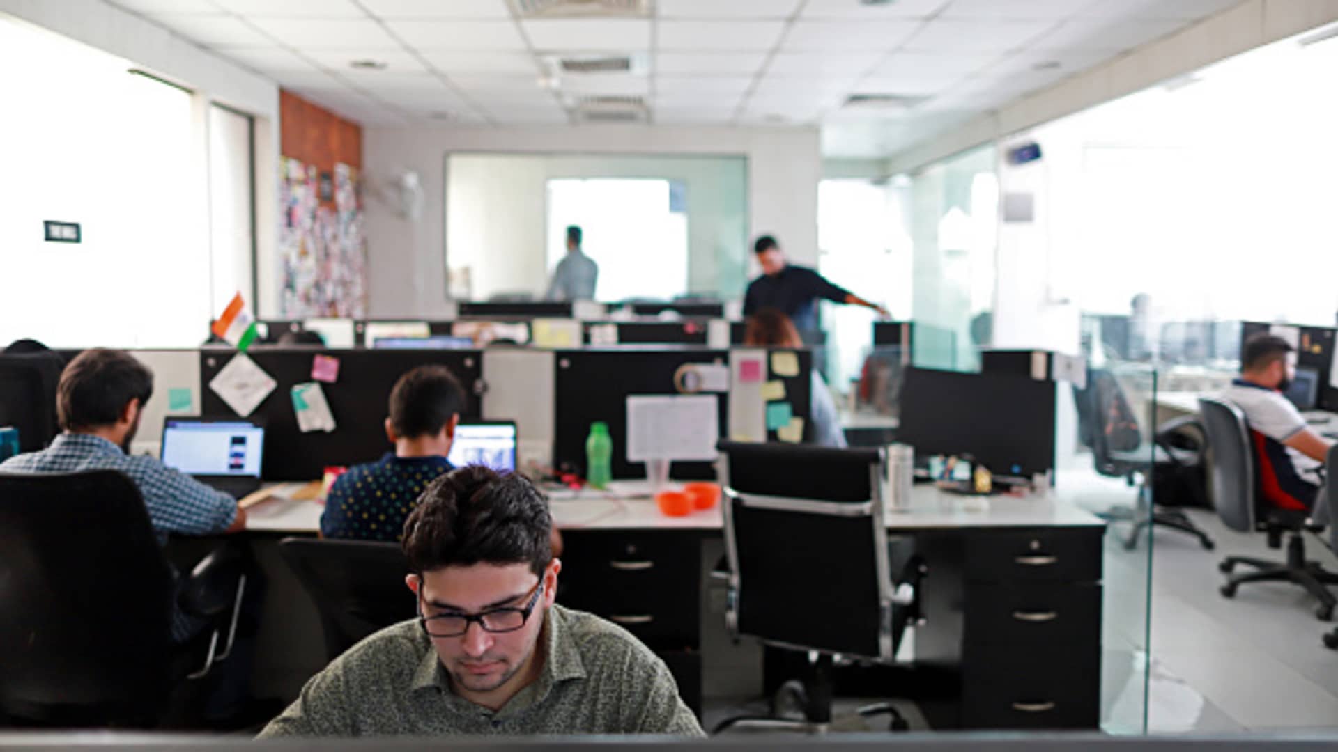 Employees work at the headquarters of security system developer Staqu Technologies in Gurugram, India.
