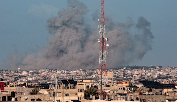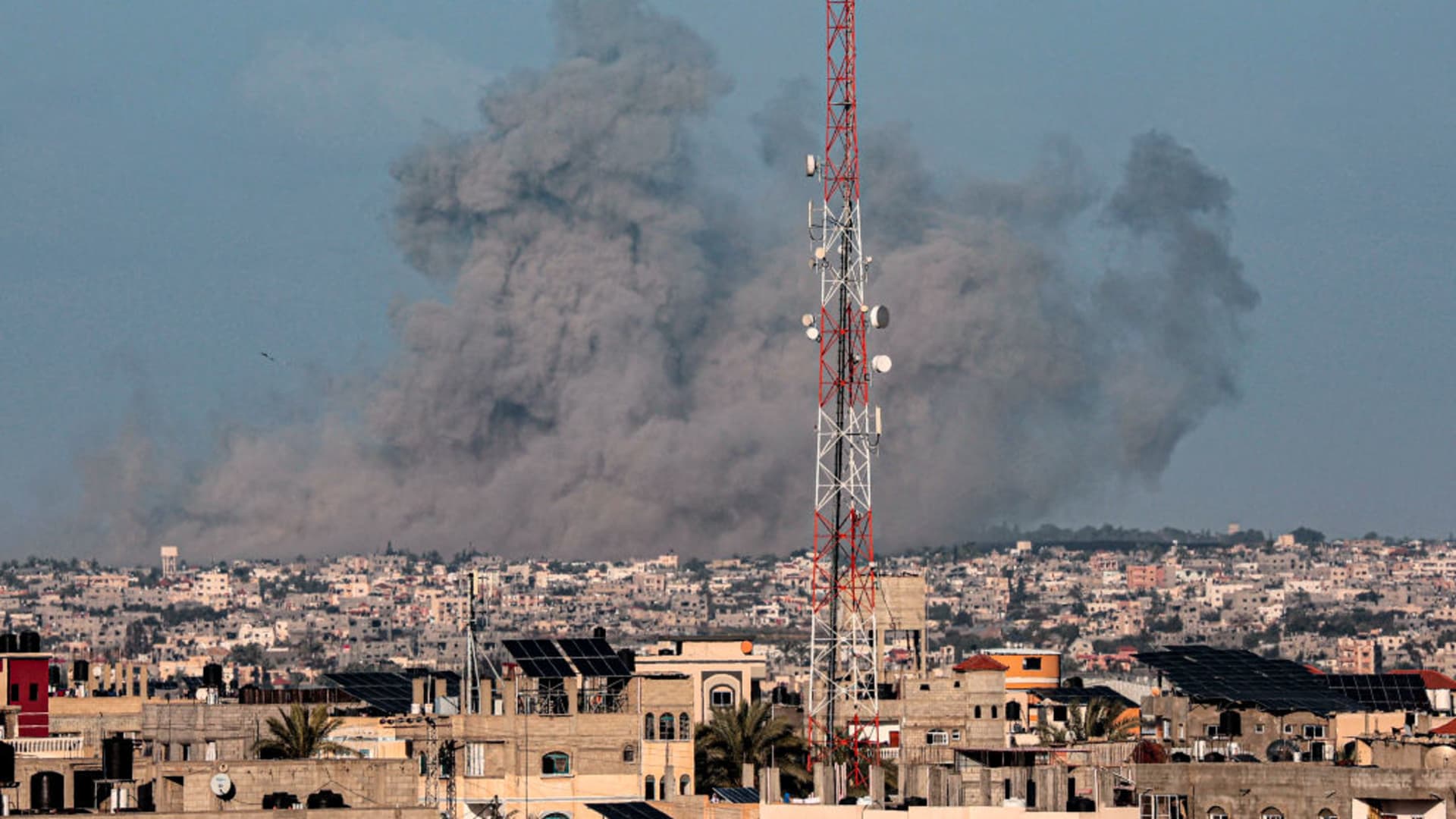 A picture taken from Rafah shows smoke billowing over Khan Yunis in the southern Gaza Strip during Israeli bombardment on March 4, 2024, amid ongoing battles between Israel and the Palestinian militant group Hamas.