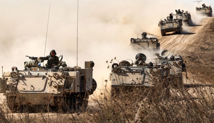 Israeli tanks move near Gaza border as Israeli army deploys military vehicles around the Gaza Strip, Israel on October 12, 2023.
