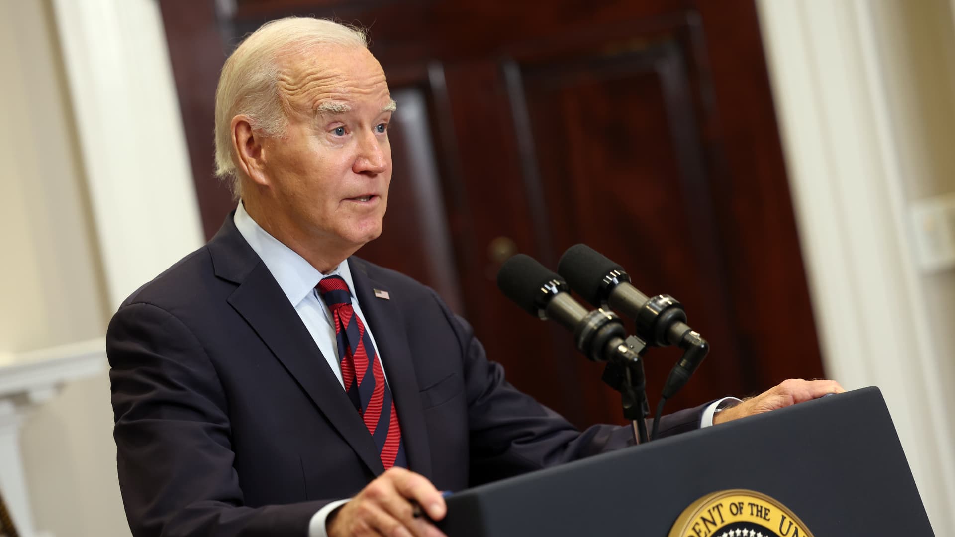 U.S. President Joe Biden delivers remarks on new Administration efforts to cancel student debt and support borrowers at the White House on October 04, 2023 in Washington, DC.