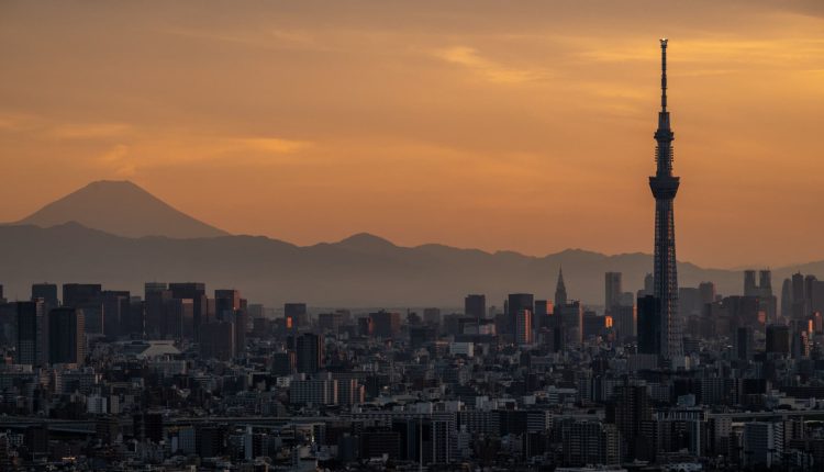 Tokyo Skytree and Mount Fuji are seen from the I-link Town observatory in Ichikawa city, Chiba prefecture, east of Tokyo on July 2, 2023.