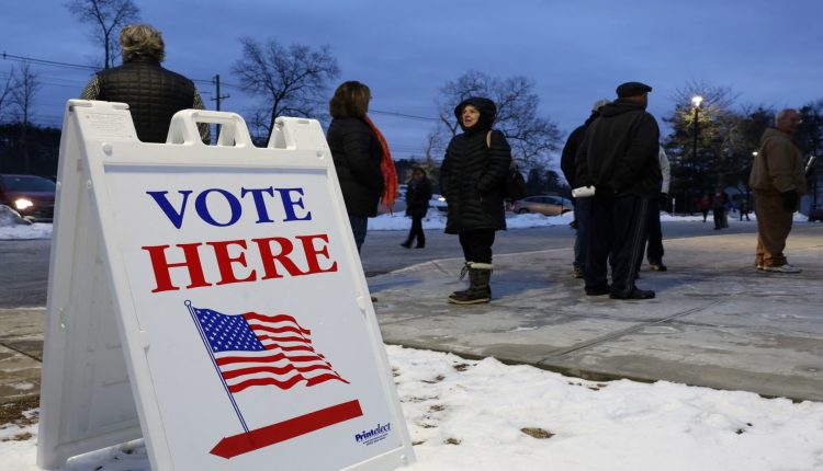 Voters line up to cast their ballots in the New Hampshire primary election in Londonderry, New Hampshire, U.S., January 23, 2024.