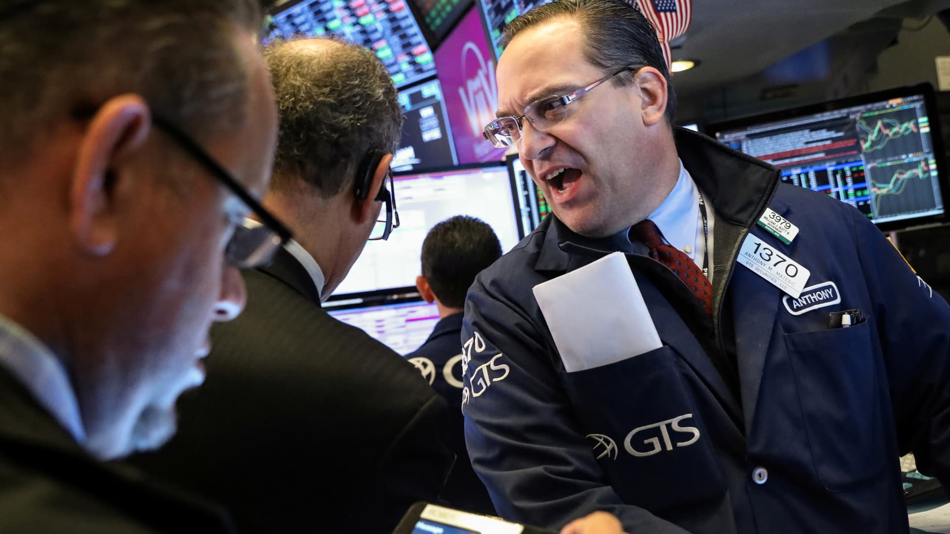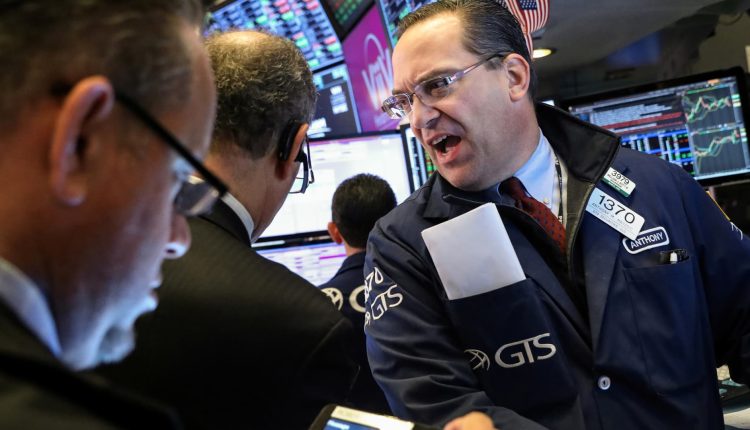 Traders work on the floor at the New York Stock Exchange.