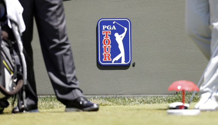 The PGA Tour logo is seen during the third round of the Travelers Championship at TPC River Highlands in Cromwell, Connecticut, on June 24, 2017.