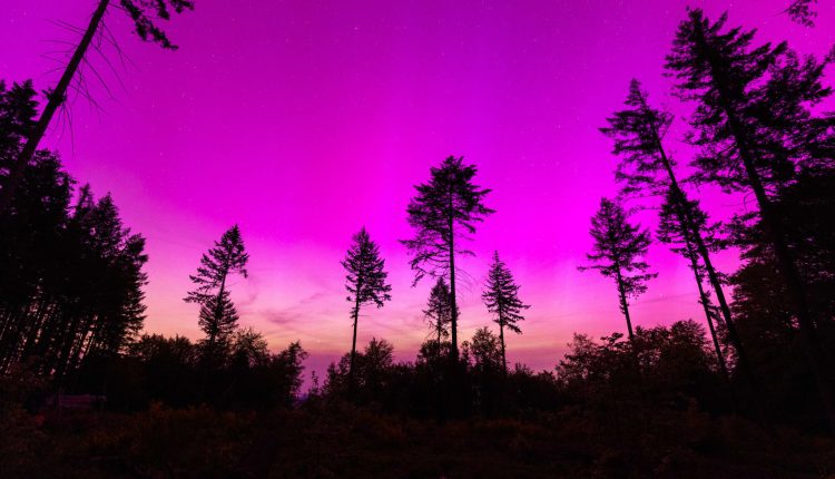 The Aurora borealis, commonly known as the northern lights, is seen on May 11, 2024 in Manning Park, British Columbia, Canada. (Photo by Andrew Chin/Getty Images)