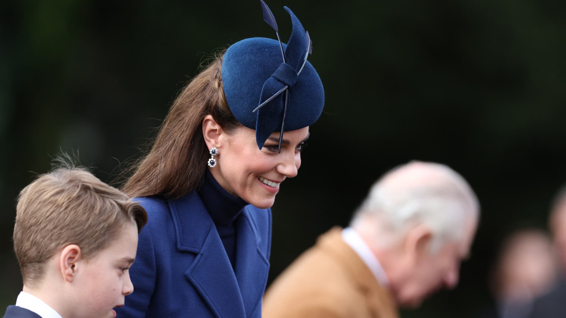 Britain’s Catherine, Princess of Wales and Britain’s Prince George of Wales (L) leave after attending the Royal Family’s traditional Christmas Day service at St Mary Magdalene Church on the Sandringham Estate in eastern England, on December 25, 2023.