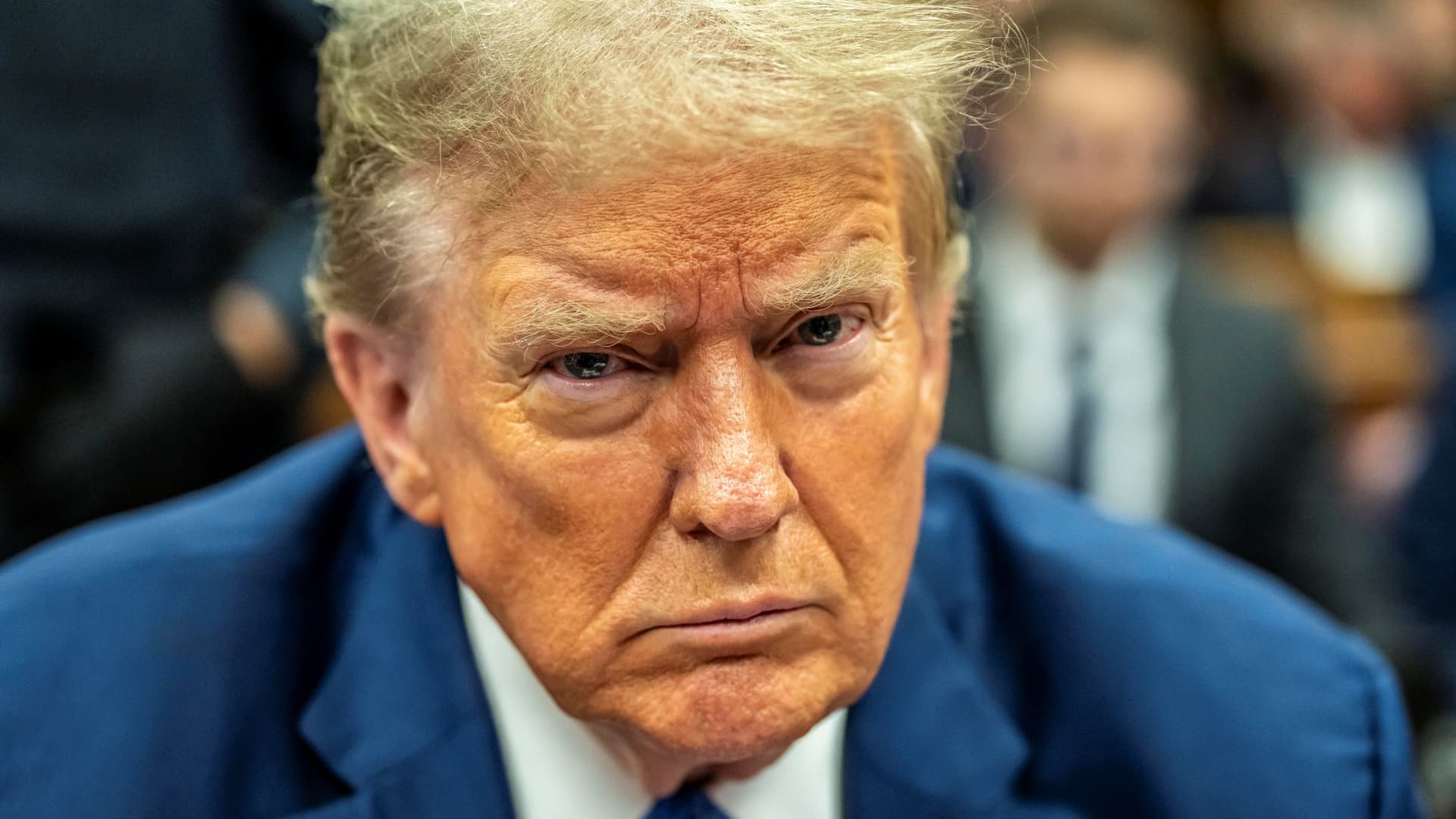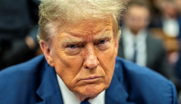 Former President Donald Trump looks on before the start of trial at the Manhattan Criminal Court during trial in New York City May 20, 2024.