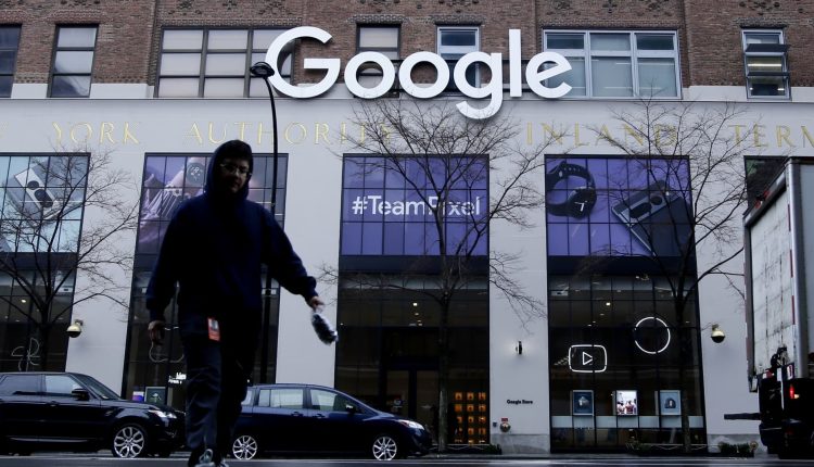 A pedestrian passes by Google offices in New York City, Jan. 25, 2023.