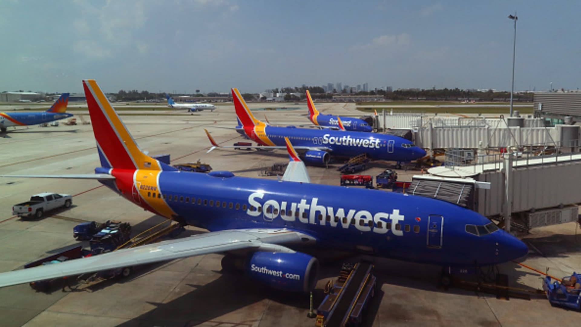 Southwest Airlines airplanes are serviced at their gates at Fort Lauderdale-Hollywood International Airport on May 18, 2024, in Fort Lauderdale, Florida.