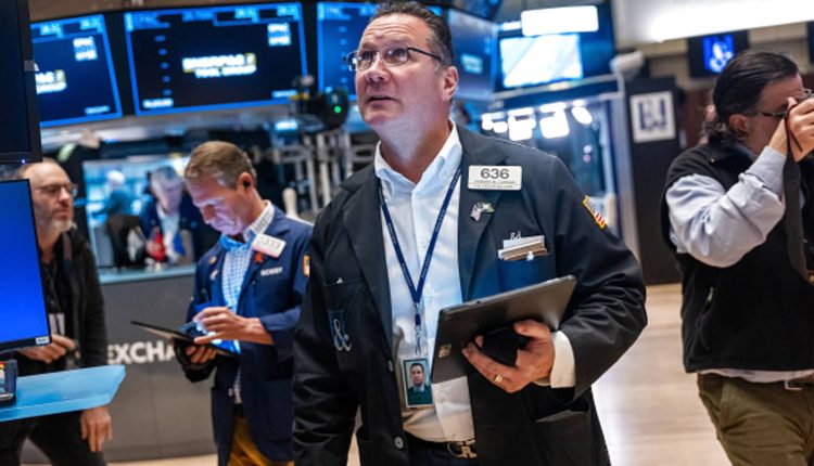 Traders work on the floor of the New York Stock Exchange (NYSE) on October 20, 2023 in New York City.